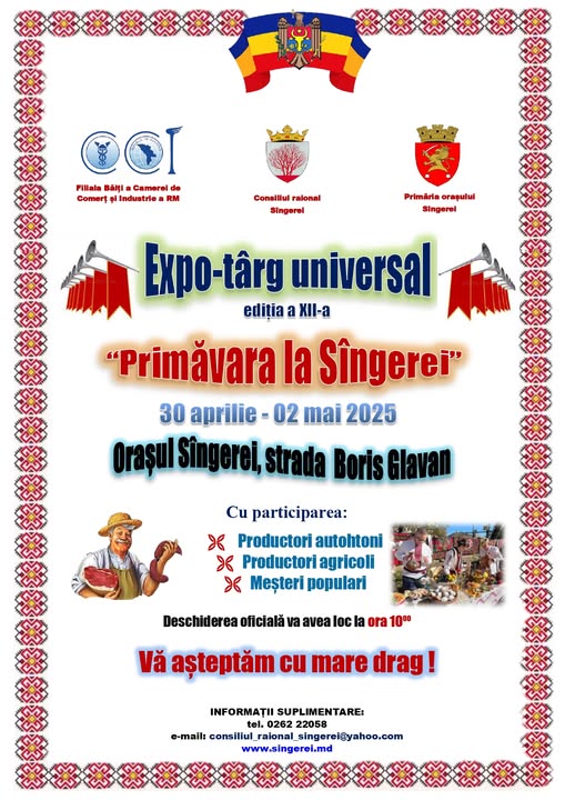 Expo-târgul se va desfășura în orașul Sângerei, strada Boris Glavan.