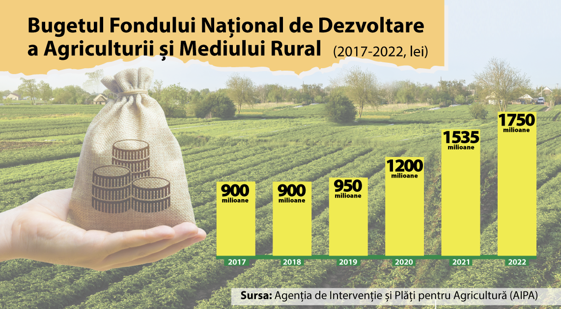 Fondul Național de Dezvoltare a Agriculturii și Mediului Rural a crescut semnificativ în ultimii ani – de la 900 de milioane de lei în anii 2017-2018, la 1,5 miliarde de lei în 2023. În 2022 acesta a fost de 1,5 miliarde de lei, dar ulterior a fost suplimentat cu 250 de milioane de lei pentru a ajuta producătorii agricoli să facă față majorării prețurilor la carburanți și materie primă, provocate de invazia rusă în Ucraina. Și în acest an autoritățile au declarat că vor identifica 200 de milioane de lei suplimentar pentru subvenționarea agricultorilor după un șir de acțiuni de protest ale acestora.