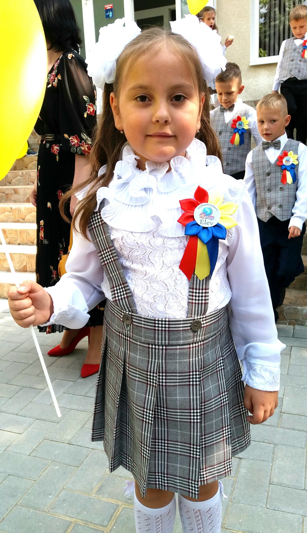 Fetița tatei și a mamei, omagiată pentru toți, primește în brațele mici anii și mare crești pentru toți. La școală prima să deschizi ușa, și fila cărții s-o cuprinzi, cu pasiune și ardoare, copil frumos te ocrotim. Cu bunătate și încântare, povestea noastră, cea dintâi. Cuminte să fii și curajoasă, acasă când singură rămâi . Că fată mare tata are, și-i mândră mama că ești a ei. Până și oglinda -ți duce dorul, ce frumos crește puișorul.