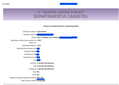 L-am întrebat pe Victor Gaiuciuc de ce a indicat acest preț, de vreme ce chiar și în fișa cadastrală a apartamentului valoarea, stabilită în 2004, este de 801 128 de mii de lei, adică în jur de 42 de mii de euro. Iată răspunsul: